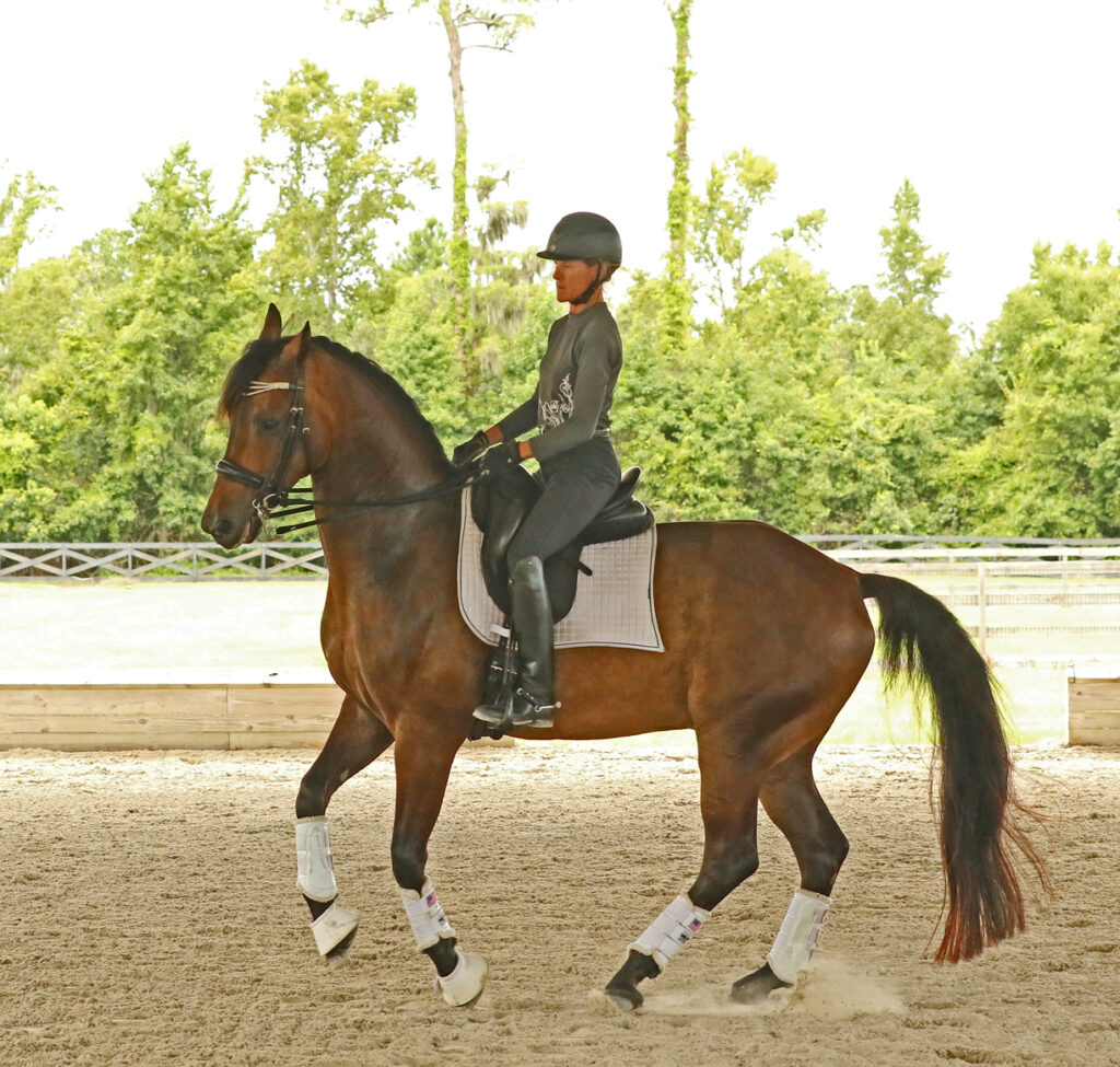 Stiletto has competed in two Intermediare-II tests, can clock out the one tempi changes, and schooling the other Grand Prix movements.