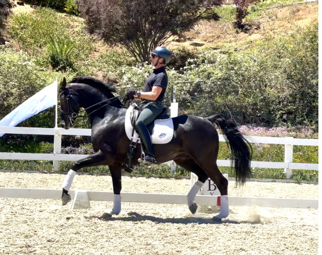 Superman is a beautiful black FEI gelding. (Sir Nymphenburg x Rivero I). Suitable for any rider. “Clark” is perfect on the ground, clips, trailers well and goes on trail. He is very comfortable to ride, not spooky with very good ability to sit.