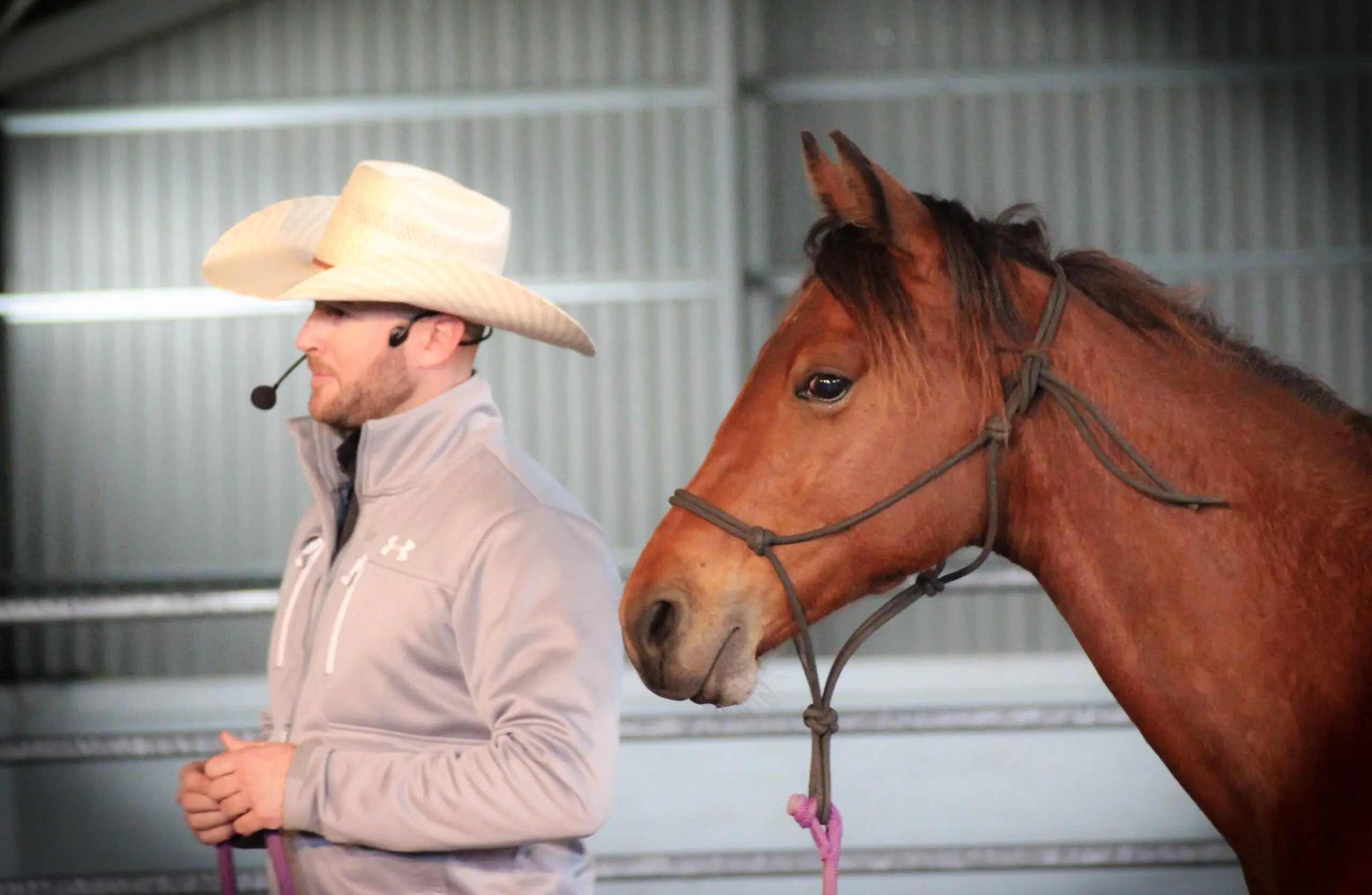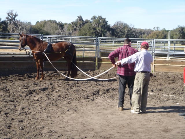 Professional trainer Fred Merriam instructing a student on long lining a Morgan mare belonging [...]