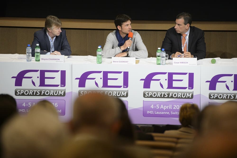 Olympic champion Steve Guerdat (SUI), centre, speaking on the panel during session three of [...]