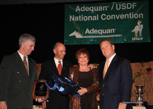 USDF president George Williams congratulates Steffen Peters and Jen and Bruce Hlavacek owners of [...]