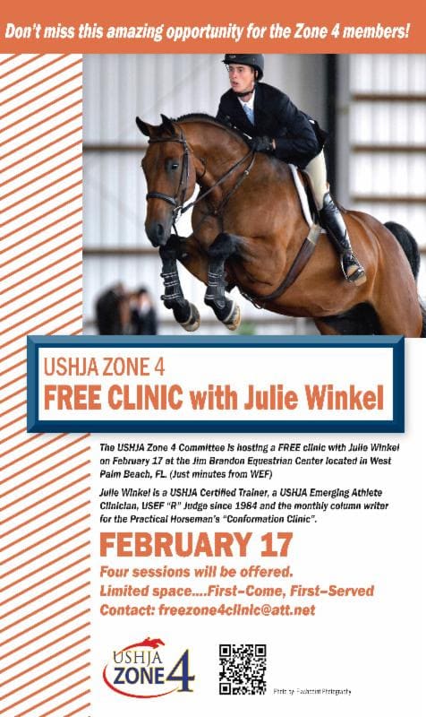 Wellington, FL - The USHJA Zone 4 Free Clinic is excited to welcome Julie [...]