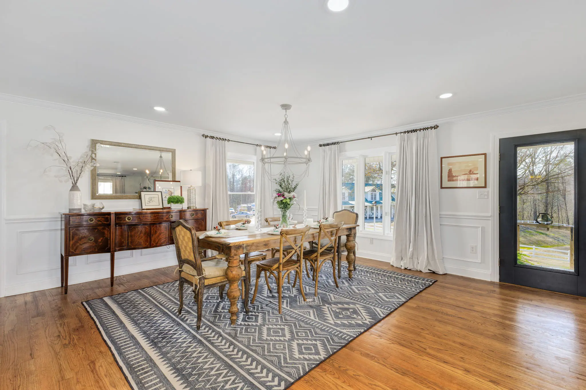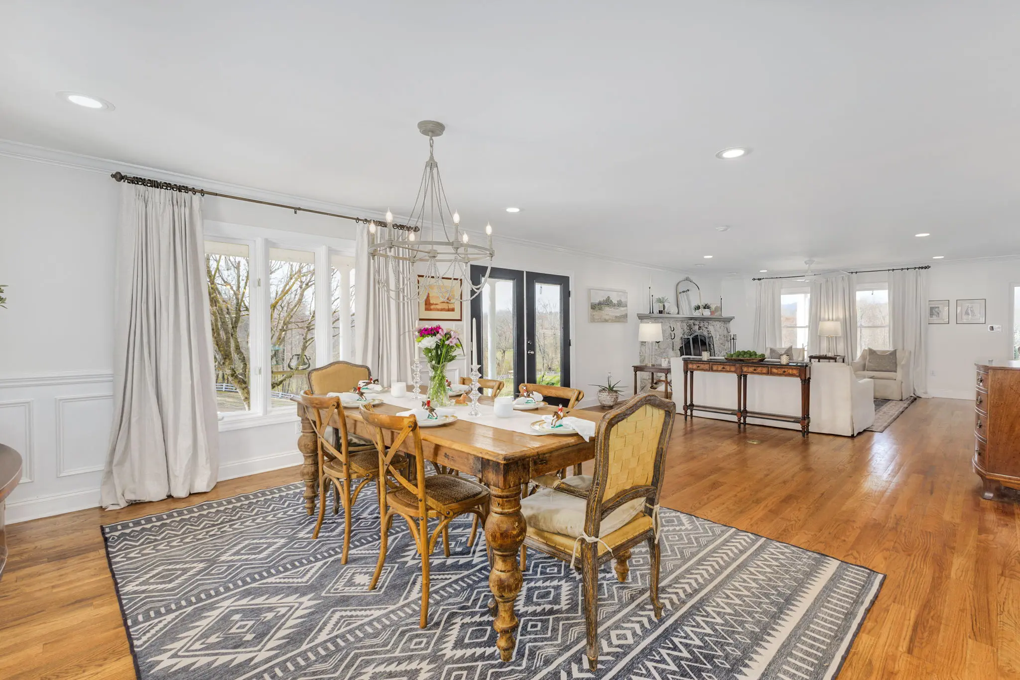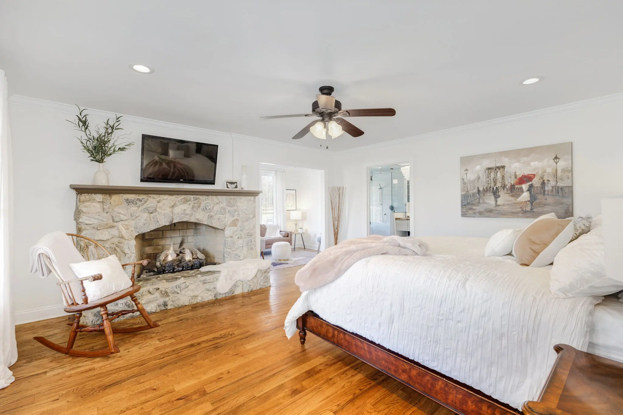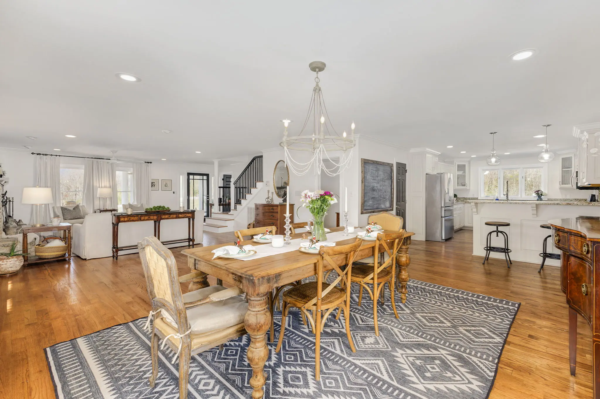 Situated amidst meticulously maintained grass pastures and overlooking a fully stocked spring-fed pond, this custom-built two-story farmhouse spans over 3700 square feet and is complemented by a matching 5000 square foot center aisle barn.