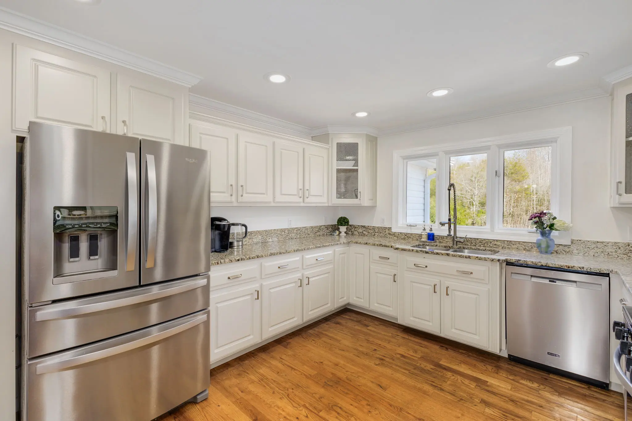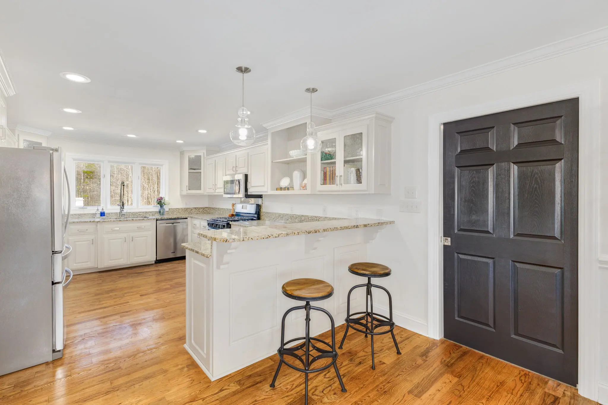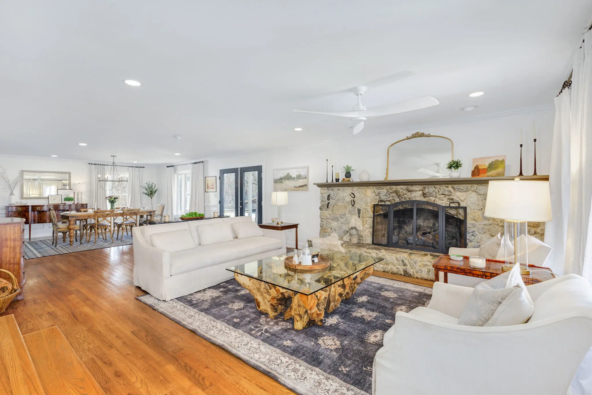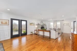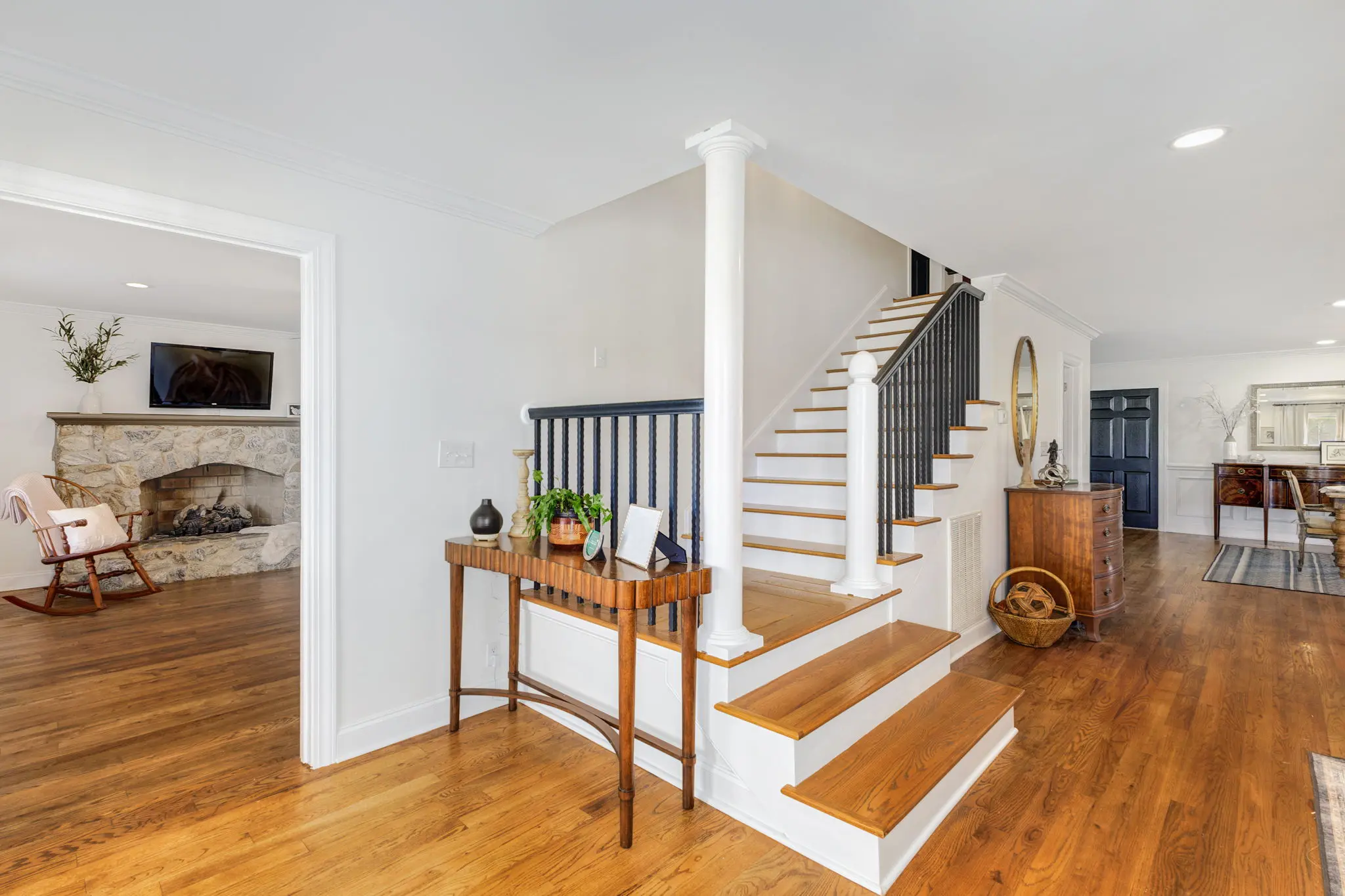 Situated amidst meticulously maintained grass pastures and overlooking a fully stocked spring-fed pond, this custom-built two-story farmhouse spans over 3700 square feet and is complemented by a matching 5000 square foot center aisle barn.