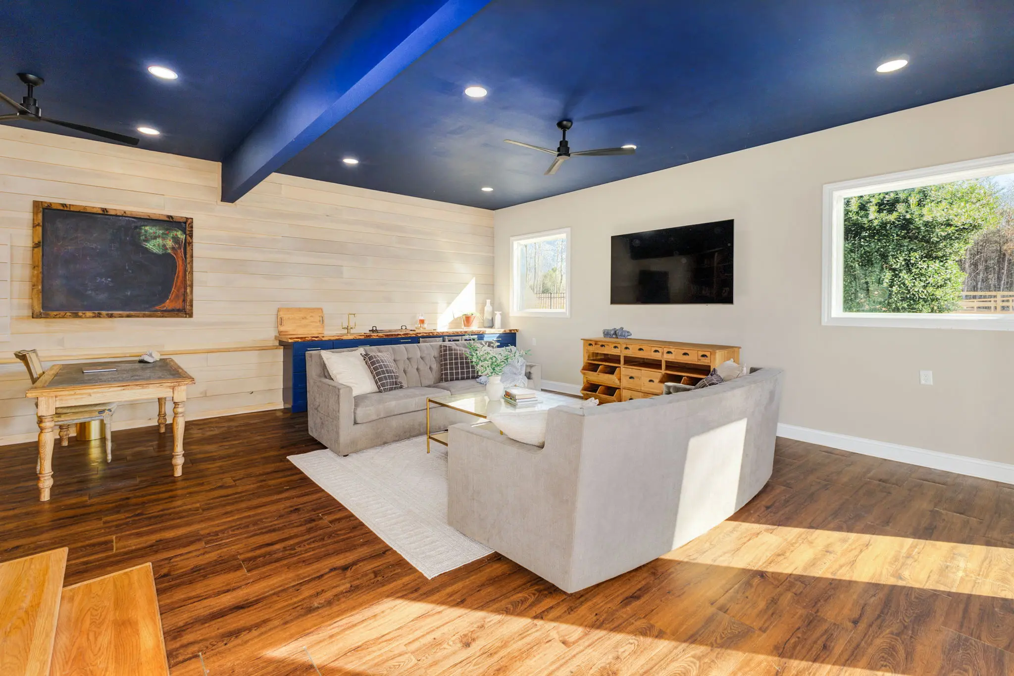 The property showcases its true beauty with an inground pool, jacuzzi, custom waterfall, firepit, pergola, and raised garden beds - an entertainer's paradise!